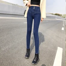 #3065 High Waist Jeans Women's Autumn Winter Tight Denim Black Blue Pencil Pants Girls Cotton Elastic Long Trousers Sexy Slim