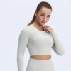 Nepoagym ACTING Basic Women Cropped Seamless Top Slick Soft with Scrunch on Back Long Sleeve Crop Workout Shirts for Sports Gym