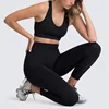 2PCS Womens Yoga Sets Leggings + Elastic Sports Bras Solid Colour Gym Clothing Fitness Sportswear Workout Clothes for Woman