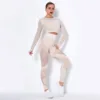 Seamless Mesh Yoga Set Fitness Workout High Waist Tights Long Sleeve Striped Top Women Fitness Gym Sets Fashion Sport Suit