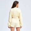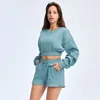 Seamless Women Yoga Sets Gym Clothing Long Sleeve Top+Sports Shorts 2 Piece Gym Workout Sportwear Tracksuit Female