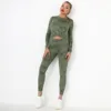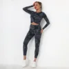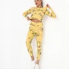 2 Pcs Yoga Suit Sportswear Workout Athletic Leggings Female Clothing Tie Dye Tracksuit Sports Long Sleeves Crop Top for Fitness