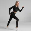 Women Yoga Set Seamless Gym Set Long Sleeve Shirts High Waist Leggings Workout Pants Fitness Sports Suits Sport Outfit