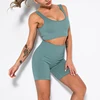 2Pcs Yoga Sport Suit Seamless Gym Set Workout Outfit Clothes Women Bra Crop Tops Fitness Shorts Sports Wear Gym Clothing