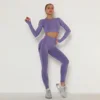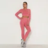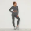 Seamless Tracksuit Outfit Clothes Gym Wear Sport Fitness Yoga Set Women 2 Piece Long Sleeve Crop Top T-Shirt Leggings Gym Set
