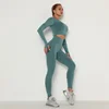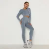 Women Sport Suit Yoga Set Gym Workout Clothes Long Sleeve Fitness Crop Top + High Waist Energy Seamless Push Up Leggings Suits