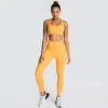 Womens Yoga Sets Leggings + Elastic Sports Bras Solid Colour Gym Clothing Fitness Sportswear Workout Leggings Clothes for Woman
