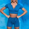 Seamless Yoga Set Zipper Sexy Bra High Waist Shorts Sportwear Women Set Workout Clothes for Women Fitness Gym Women Fitness Set