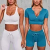 Seamless Yoga Set Women Running Tracksuit Sportswear Crop Top Bra Drawstring Shorts Sportsuit Workout Outfit Sport Fitness Wear