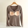 Velvet Thermal Underwear Long-sleeved Bottoming Shirt Women's Seamless Bra French Fixed Cup Single Layer Sanding Heating Top
