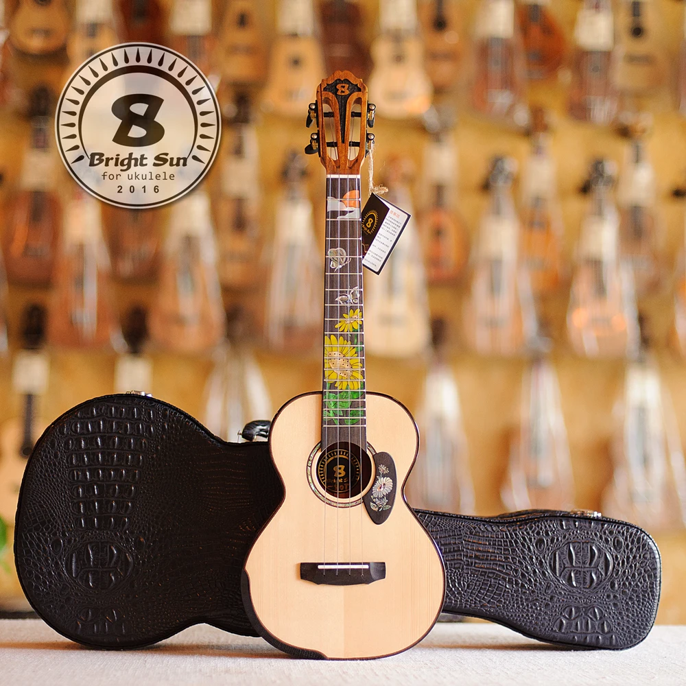 BrightSun BS-80T 26 inch Ukulele Solid Spruce Rosewood With Case/Tuner/Capo/Belt/Strings/Picks