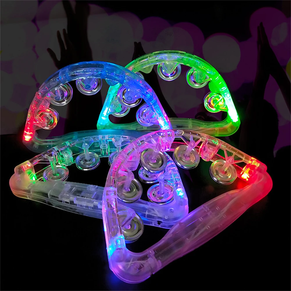 LED Light Up Sensory Toy Flashing Hand Held Tambourine Flash Rattle KTV Party Kid Game Toy Musical Instrument Shaking Toys