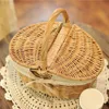 Handmade Large Wicker Basket with Handle Picnic Willow Woven Storage Hamper outdoor Camping Picnic Fruit Basket Container