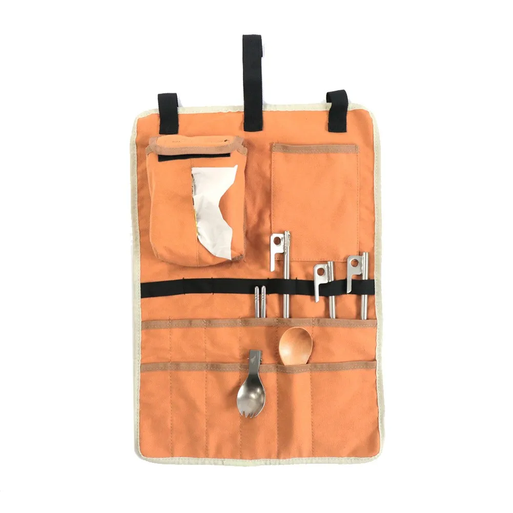 Outdoor Camping Hanging Tableware Storage Bag Folding Cookware Holder Tissue Multifunctional Canvas Tent Canopy Bag 48x34cm