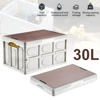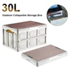 Plastic Collapsible Storage Box with Wooden Lid Outdoor Camping Storage Container Multifunctional Foldable Car Travel Organizer