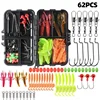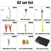 62 Pcs of Fishing Accessories Set Soft Bait Grass Shrimp Retaining Beads Hanging Bait Screw Straight Handle Hook Fishing Tools
