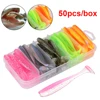 50pcs/box Fishing Lure T Tail Spinner Soft Artificial Bait Paddle Tail Soft Worm Carp Bass Freshwater Fishing Tackle Accessories