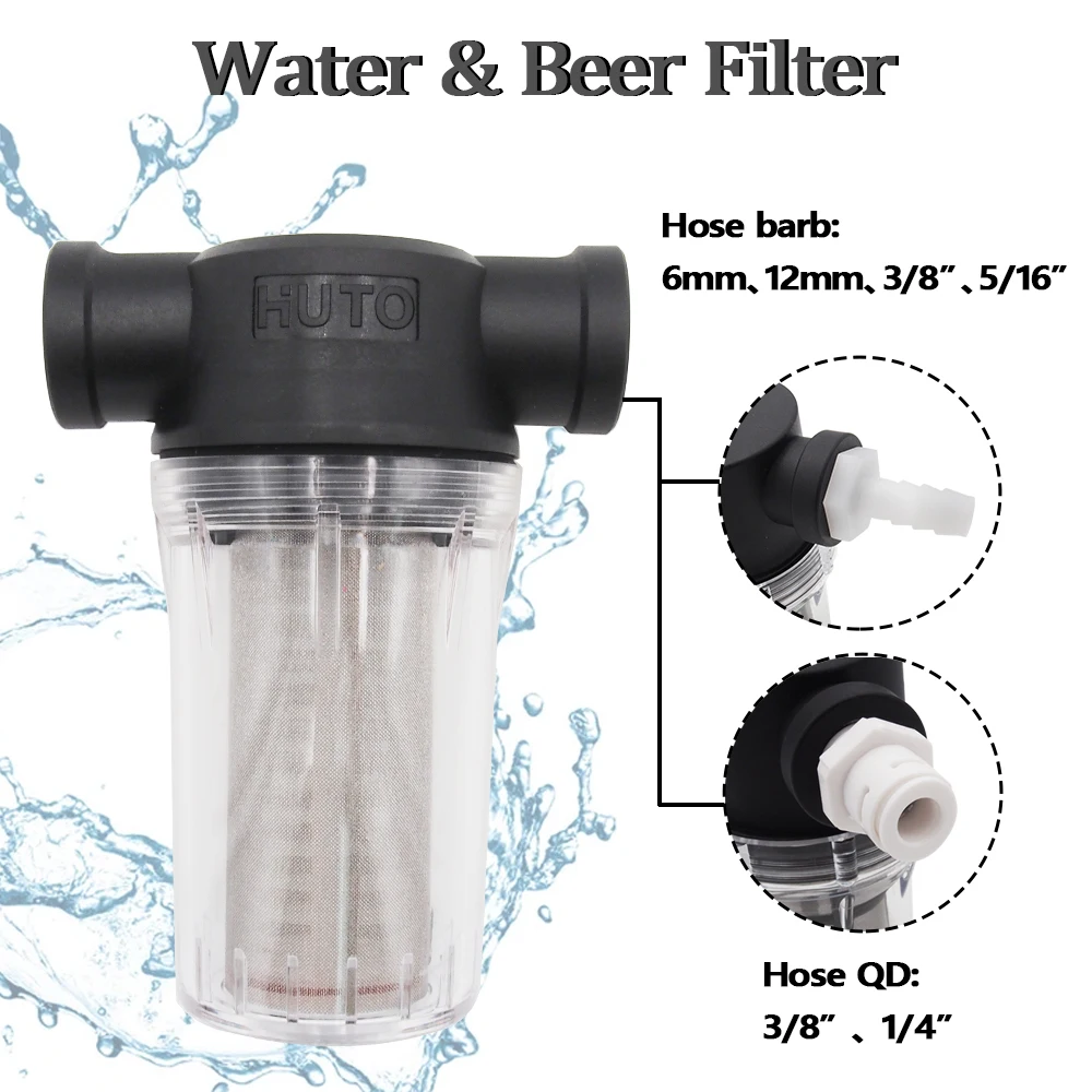 Home Brewing Irrigation Hose Filter 150 micron 100 mesh Water&Beer Filtering,with 1/4inch,3/8inch,6mm,12mm Hose Barb & Hose QD