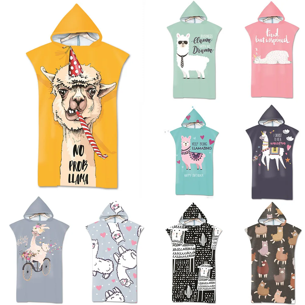 Hot Sale Printed Alpaca Microfiber Quick Drying Beach Towel Hooded Surf Cloak Changing Poncho Adult Children Customized Bathrobe
