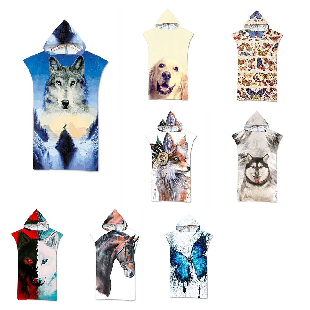 Microfiber Printed Hooded Beach Towel For Adults Quick Dry Sun Protection Swimming Pool Poncho Bath Towel With Cloak Bathrobe