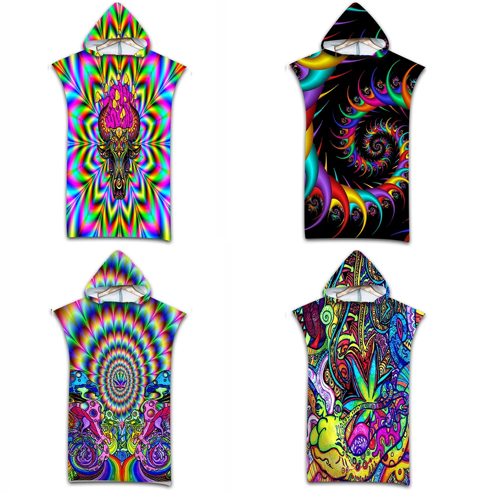 Dynamically Rotating 3D Pattern Microfiber Beach Towel Adult Children Hooded Quick-drying Bath Towel Water Sports Surf Cloak