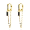 Women's Fashion Chain Tassel Hoop Earrings Crystal Zirconia Golden Huggies Elegant Dangle Earring Accessories Charm Ear Jewelry
