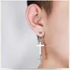 Black Cross Ear Bone Clip Punk Stainless Steel Stud Earrings for Men and Women Clip on Fashion Korean Earrings Jewelry Party