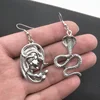 Gothic Dark Punk Ancient Silver Color Medusa Queen Hydra Head Snake like Ear Stud Earrings Female New Style Dangle Earrings
