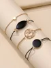 Street style retro black beaded stone wind dripping oil love map beaded necklace four-piece bracelet wholesale
