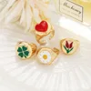 Fashion Creative Retro Love Resizable Dripping Flower Metal Open Ring for Women Couple Wedding Rings Luxury Jewelry Party