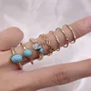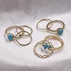 2022 New Fashion Women Bohemian 7pcs Irregular Colorful Natural Stone Ring Set Women Sexy Party Copper Ring Set Jewelry