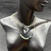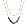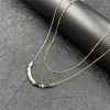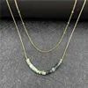 2022 New Fashion Women Retro Green Stone Double Layer Beads Chain Necklace Women Sexy Party Stainless Steel Necklace Accessories