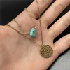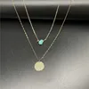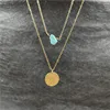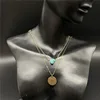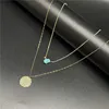 2022 New Fashion Women Green Nature Stone Coin Pendant Chain Necklace Women Sexy Party Double Layer Clavicle Necklace Jewelry