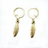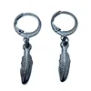 Korean Fashion Jewelry Hip Hop Kpop Leaf Earrings Stainless Steel Feather Pendant Hoop Earrings for Women and Men