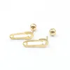 Individuality Punk Rock Man Women Pin Shape Stainless Steel Stud Earrings Wholesale Unisex Paper Clip Girl Boy Piercing Jewelry