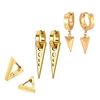 Hip Hop Gothic Earrings for Men Women Ear Piercing Jewelry Earrings Set Stainless Steel Kpop Triangle Punk Huggie Hoop Earrings