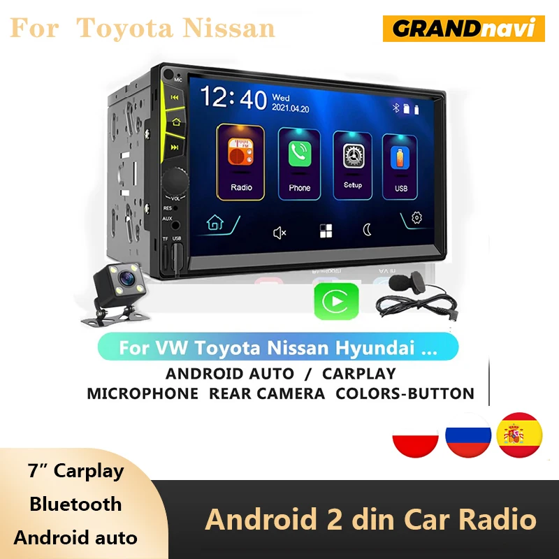 7" 2din Car Radio Android Auto Mp5 Player Capacitive Touch Screen Carplay Bluetooth Autoradio 2 Din For VW Toyota Nissan Lada