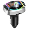 Car Charger Dual Screen Display Pd/Qc3.0 Dual Port Fast Charging Bluetooth Adapter Mp3 Player Atmosphere Light Auto Accessories
