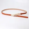 106cm*1.4cm Thin Belt All-Match Women Alloy Leaf Design Buckle Jeans PU Waistband Female Fashion Band Ladies