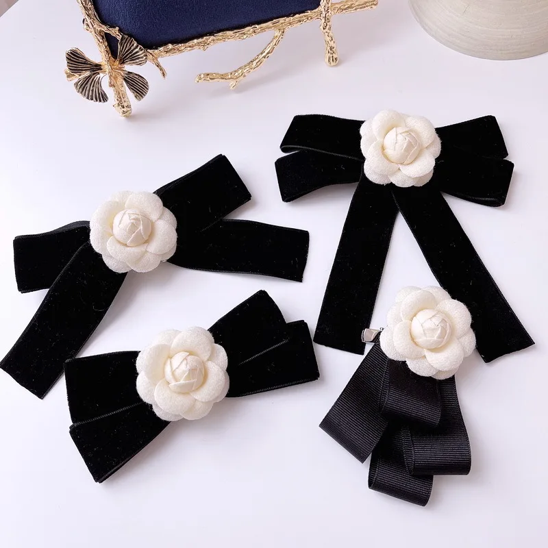 Korean Camellia Brooch Retro Velvet Small Fragrant Bow Tie Girls Bowtie Flower Female White Shirt Collar Pin School Accessories