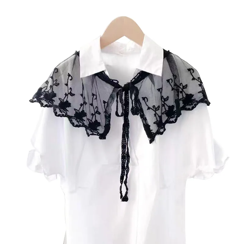 Fashion Thin Fake Collar Shoulder Wrap for Women Shirt Detachable Collars Shawl Necklace Lapel Blouse Embroidery False Collars