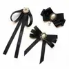 Black Ribbon Pearl Black Bow Tie Women Blouse Bowknot All-match Wear Elegant Accessories Temperament V7z0