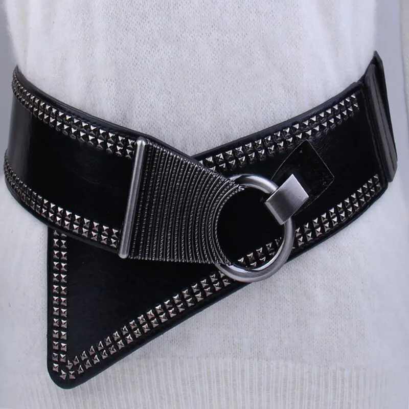 Fashion Punk Rivet Metal Buckle belt Women Wide Stretch Leather Corset Waistband Exquisite Luxury Ladies Dress Clothes Accessory