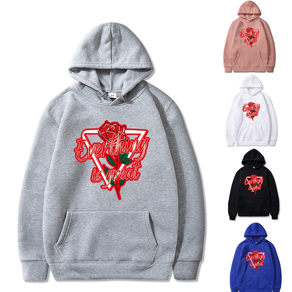 Fashion Hoodie Men'S Sweatshirt Casual Pullover Spring and Autumn Streetwear Rose Print Long Sleeve Hoodies Women Harajuku Men