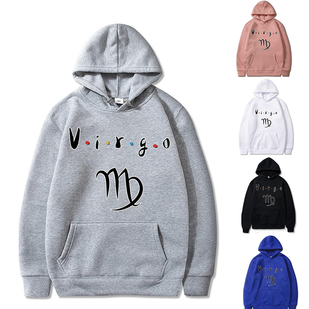 Men'S Hoodie Spring and Autumn Sweatshirt Couple Streetwear Long Sleeve Big Pocket Pullover Virgo Letter Print Hoodies Harajuku
