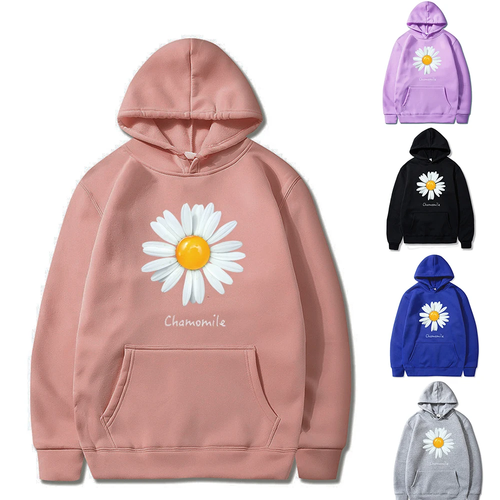 Couple Hoodie Men Sweatshirt Spring and Autumn Long Sleeve Pullover All-match Casual Top Chamomile Printed Large Pocket Hoodies