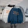 Simple sweatshirt for men Harajuku o-neck letter printed autumn winter plus velvet pullover Korean loose academy bottoming tops