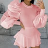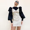 Retro Women Shirts Long Puff Sleeve Blouse 2020 Spring Autumn Fashion Female Blouses Black White Solid Tops Plus Size Clothing
