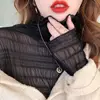 2020 autumn winter women blouse shirt korean style design sense half-collar lace mesh bottoming tops pleated retro sexy clothes