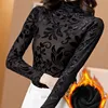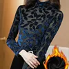 Women Blouses Woman Print Blouse Plus Velvet Woman Turtleneck Long Sleeve Blouses Blouse Shirts Women Floral Thick Blouse Top